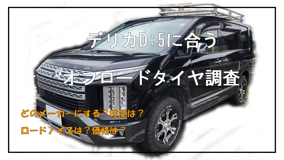 今回はデリカD:5に合うオフロードタイヤを調査しました。オフロードタイヤは、未舗装道路での走行性能がUPするだけでなく、見た目のカッコよさもあり、車の印象を大きく変えます。またホワイトレターなど、一般のタイヤにはない独特の見た目もあり、ますます迷います。