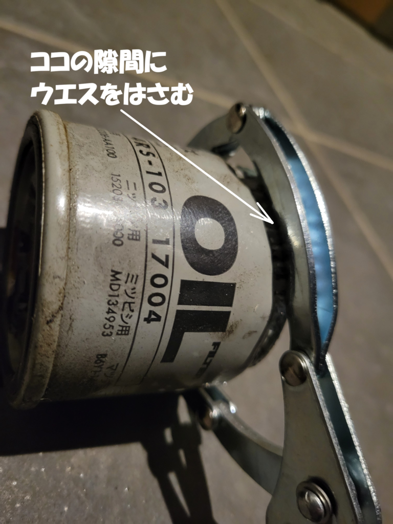フィルターレンチとオイルフィルターの隙間にウエスをかませて回したところ……回った!