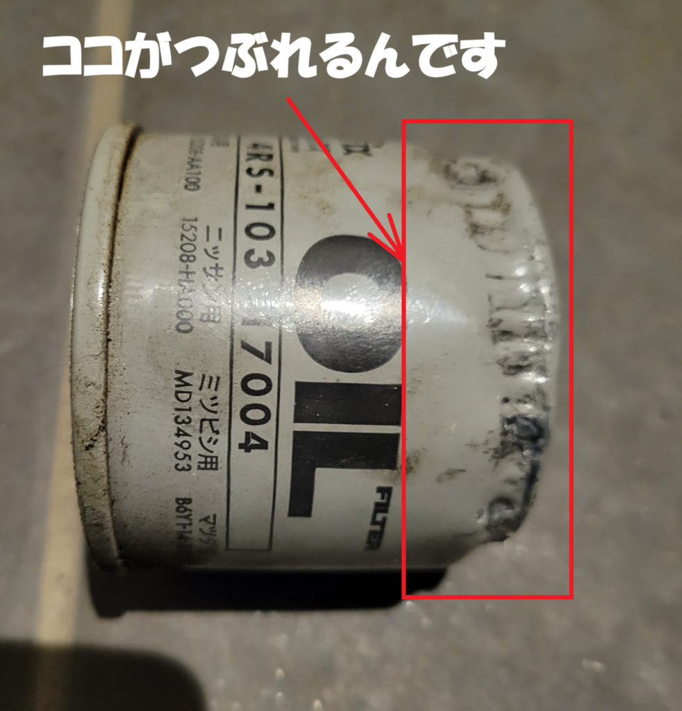 固着していたフィルターがようやく外れて、無事に取り外しできました。オイルフィルターは変えるんで形を維持しておく必要ないですもんね。