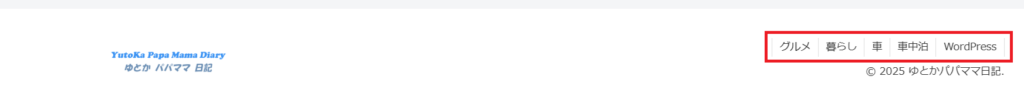 - 名前:メニューバーに表示される文字(例:レビュー、子育て 、グルメなど)
