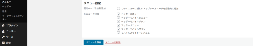 次は、実際にメニューバーの設定を行います。