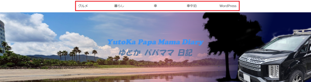 ブログの一番上、ヘッダーのさらに上や下に表示される 「メニューバー」。